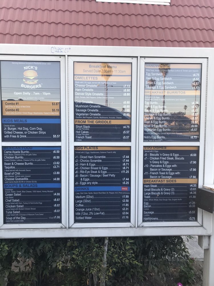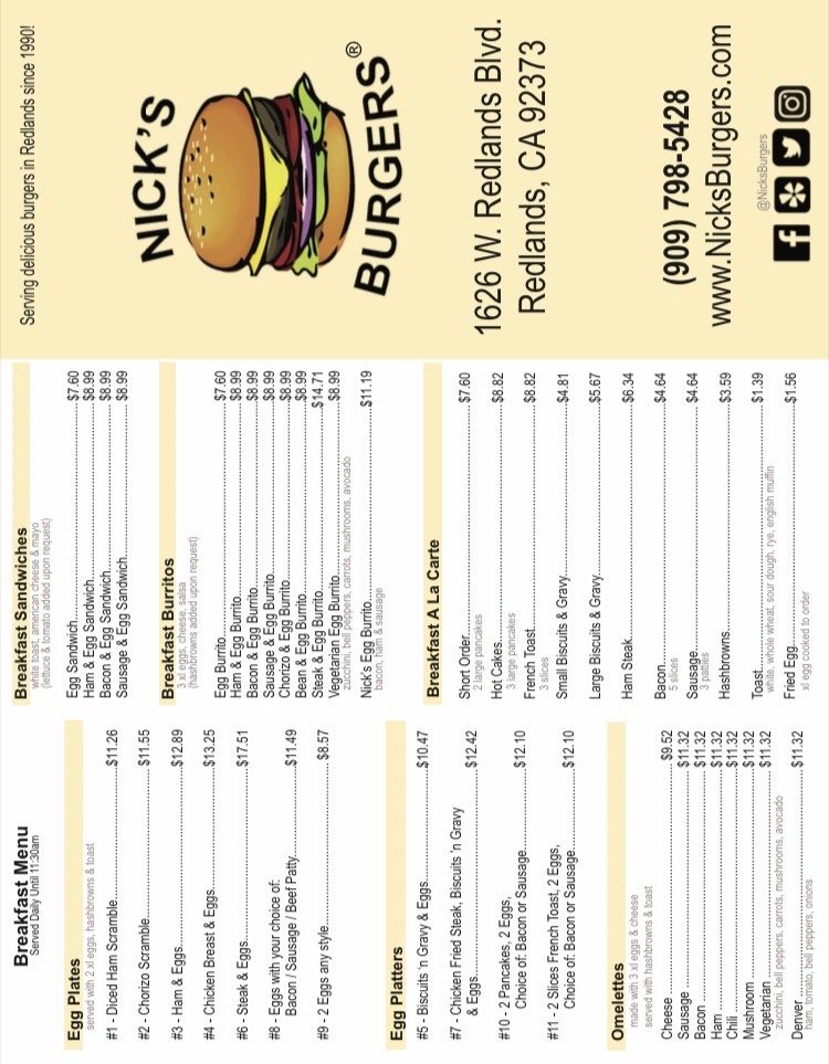Nick’s Burgers, located in Redlands, CA, offers a wide range of fast food options with a touch of class. From tasty burgers to vegan alternatives, this restaurant has something for everyone. The menu features breakfast, lunch, and dinner options, all served with excellent customer service. Customers rave about the chicken fried steak sandwich, steak sandwich combo, bacon breakfast burrito, and the flavorful mushroom dishes. With convenient drive-thru service, outdoor seating, and catering options, Nick’s Burgers is a must-try for anyone craving delicious and satisfying food. Don't miss out on this hidden gem that guarantees a delightful dining experience.